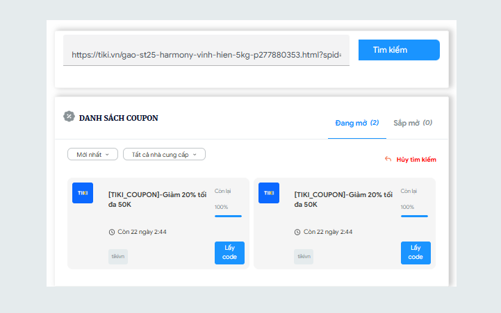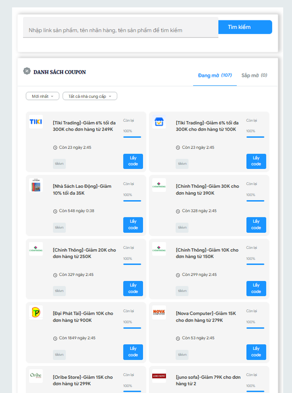 Bạn truy cập vào trang tìm mã giảm giá tại: